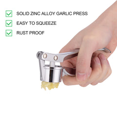 Jsdoin Knoblauchpresse, Knoblauchschneider Garlic Press, Knoblauch Crusher Praktischer Küchenhelfer Spülmaschinenfest Robust, Zink, Silber