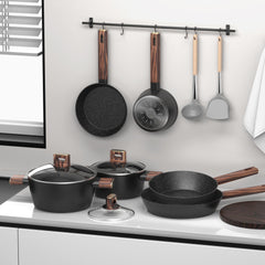 - HERDPLATTEN KOMPATIBEL: Topbooc Topf- und Pfannenset ist für alle Herdarten geeignet, und die Konstruktion aus Aluminiumdruckguss ermöglicht ein schnelles und gleichmäßiges Erhitzen der Pfanne. Kompatibel mit Gasherd, Induktionsherd, elektrischem Keramikherd und anderen Herdarten, erfüllt die Bedürfnisse verschiedener Küchenszenen. Bitte beachten Sie, dass es ratsam ist, dieses Produkt nicht in den Backofen zu stellen.
