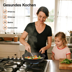 - TOPBOOC ANTIHAFTBESCHICHTUNG: Hergestellt mit einer hochwertigen Antihaftbeschichtung, die frei von PFOA, PFOS, Blei und Cadmium ist. Einfaches Kochen auch mit weniger Öl, Antihaftbeschichtung und kein Anbrennen, für ein gesünderes und einfacheres Esserlebnis zu Hause. Handwäsche wird empfohlen. Durch einfaches Abspülen oder schnelles Abwischen lassen sich Rückstände leicht entfernen, so dass Ihr Kochgeschirr makellos und leicht in einwandfreiem Zustand bleibt.