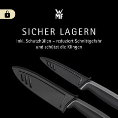 WMF Touch Messerset 2-teilig – scharfes Küchenmesser-Set aus Spezialklingenstahl, antihaftbeschichtet und ergonomisch geformt, mit Schutzhüllen, bestehend aus Kochmesser und Gemüsemesser, schwarz